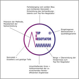 Die Methode „Top-Ten-Negotiator” wurde von Dr. Rasmus Tenbergen, MPA (Harvard) als Weiterentwicklung des sogenannten „Harvard-Konzepts“ („Principled Negotiation“) und dort angelegter Verfahren wie „Scoreable Negotiation Analysis“ und kompetitiven Simulationselementen entworfen.Sie geht insofern über das „Harvard-Konzept“ hinaus und ist „härter” als dieses, da sie auch dort als „non-scoreable“ bezeichnete Verhandlungen quantifiziert und systematisch Kennzahlen, wie die oben beschriebenen „Handicap“- und „Pareto“-Referenzwerte misst. Diese sind in den gängigen Varianten von „Principled Negotiation“ nicht enthalten.Weitere Informationen zu den Methoden finden Sie hier ...